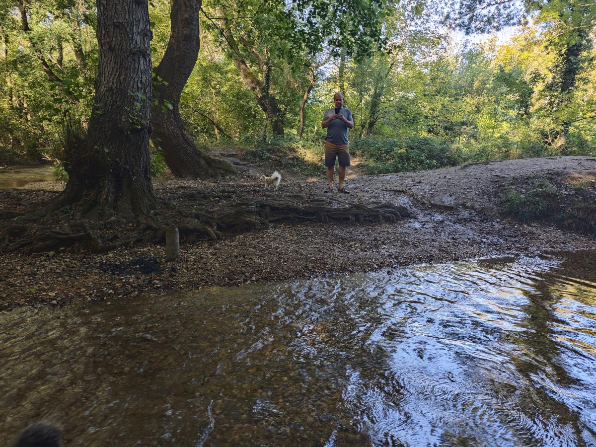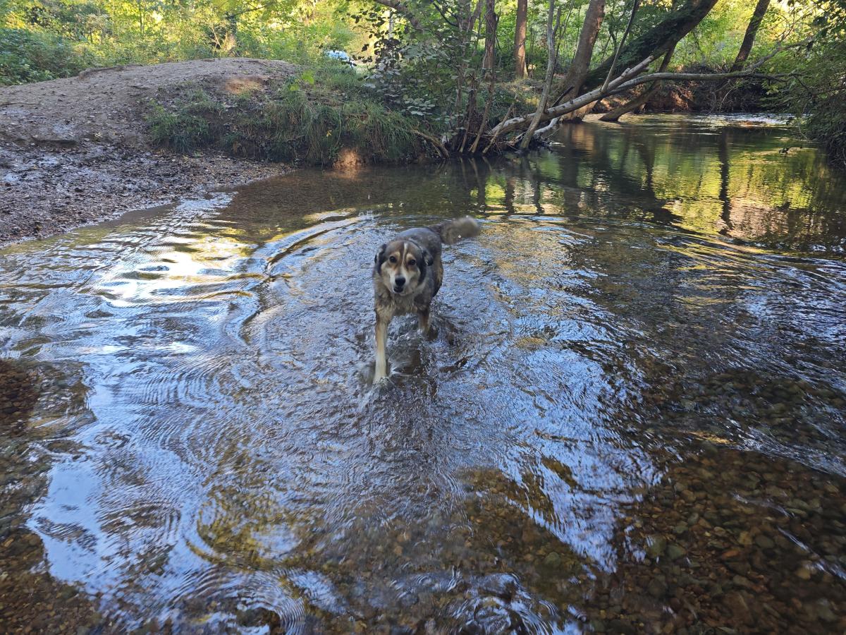 теплая осень. купание собак
